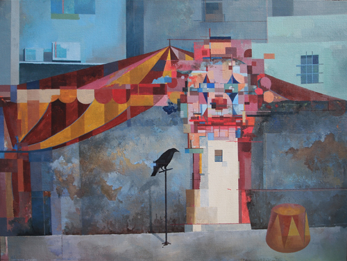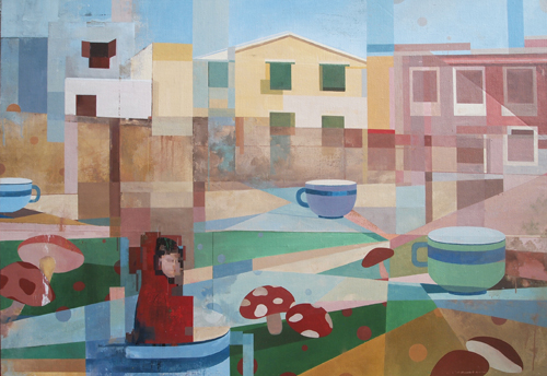 現實中渡過,黎雪穎,100 x 120 cm,布面油畫、混合媒材,2016