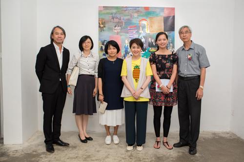 左起:藝術家朱焯信、澳門文化產業基金行政委員會委員朱妙麗、藝術家李少莊、澳門博彩控股有限公司董事梁安琪、澳門全藝社會長郭恬熙及澳門文化產業基金行政委員會主席梁慶庭
