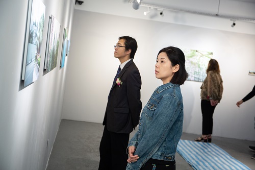 嘉賓欣賞著參展藝術家鄧國豪的作品